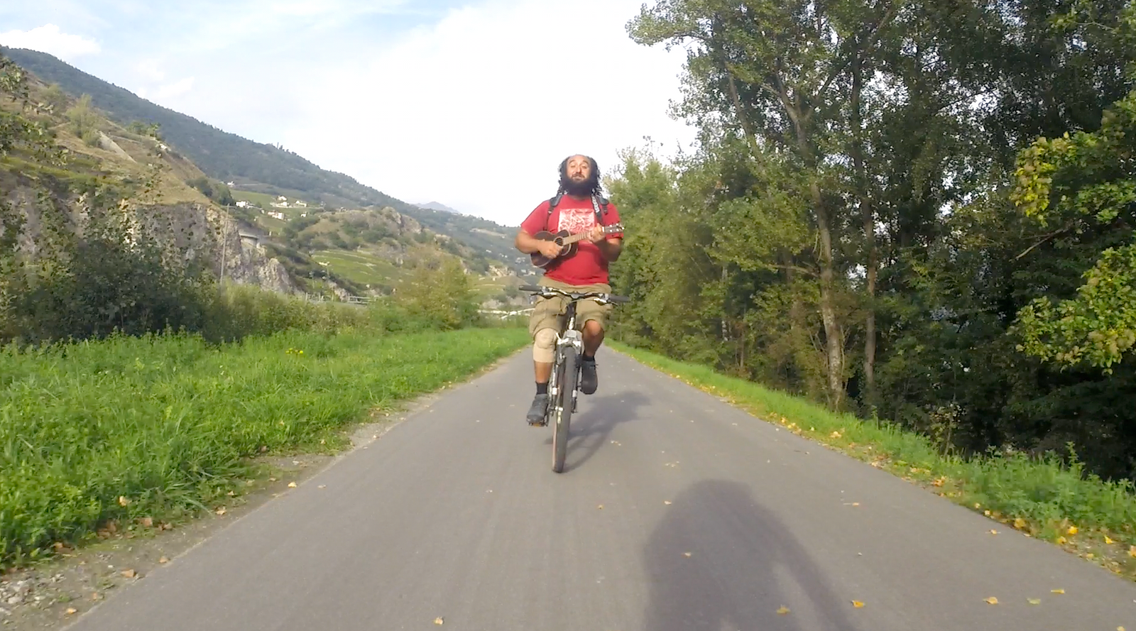 Hichem Meddeb lives in "Happyland." He spends a good part of his day riding around the country roads around Granges village in southern Switzerland, swimming in the tranquil lakes, playing his guitar and singing songs, writing a book, and cooking with his grandmother. And being playful!