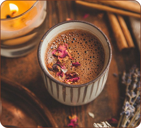 Taking cacao with a meal will slow its absorption, so you will feel the effects slower and spread over more time. Drinking cacao in this way is perfect for an entire day of soulful work.